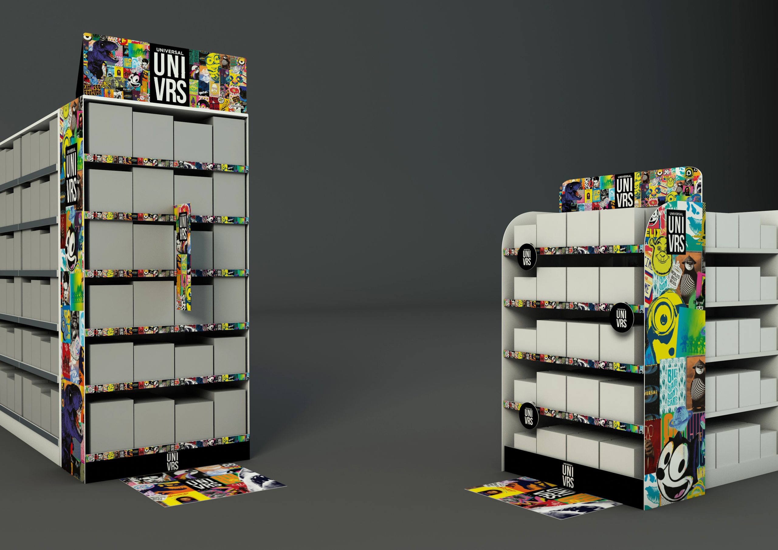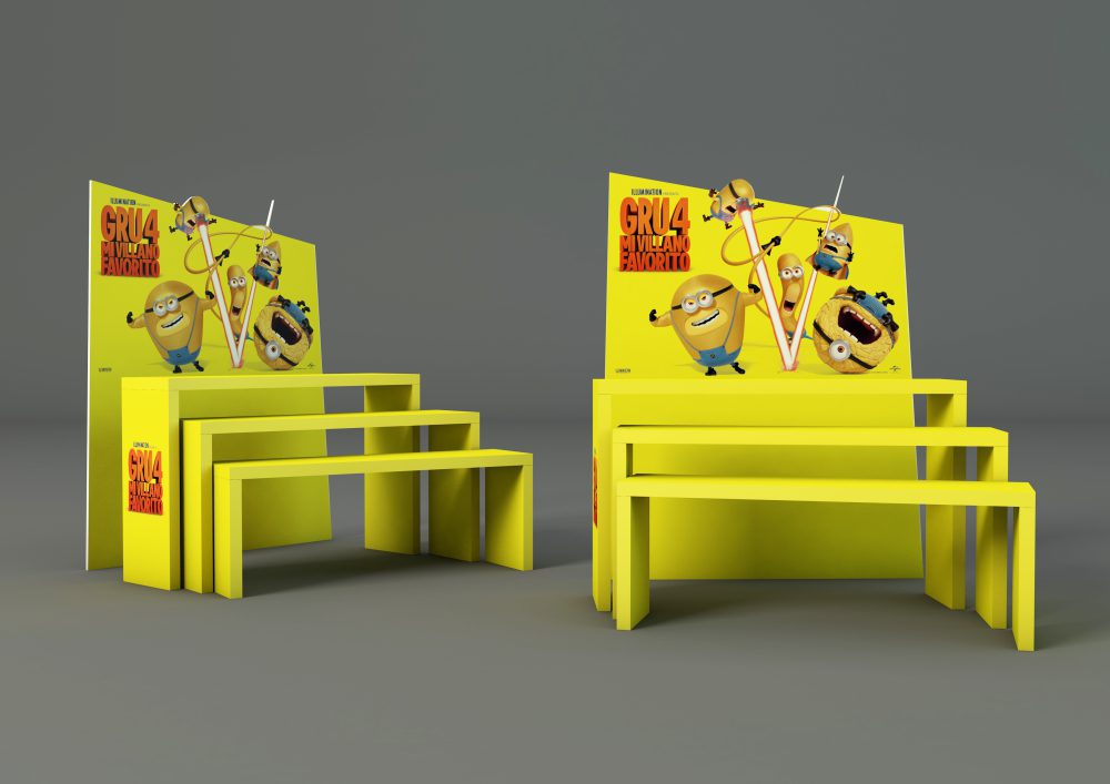 Trabajamos mano a mano con NBC Universal España, Francia y USA desde hace unos años. Para ellos hacemos lo que mejor se nos dá… banners, páginas para catálogos, o prints publicitarios. Pero sobre todo diseñamos y fabricamos elementos decorativos para las tiendas, escaparates o directamente espacios en tiendas en Centros como El Corte Inglés, Carrefour o Fnac.